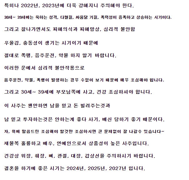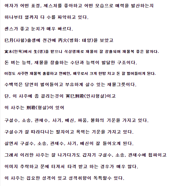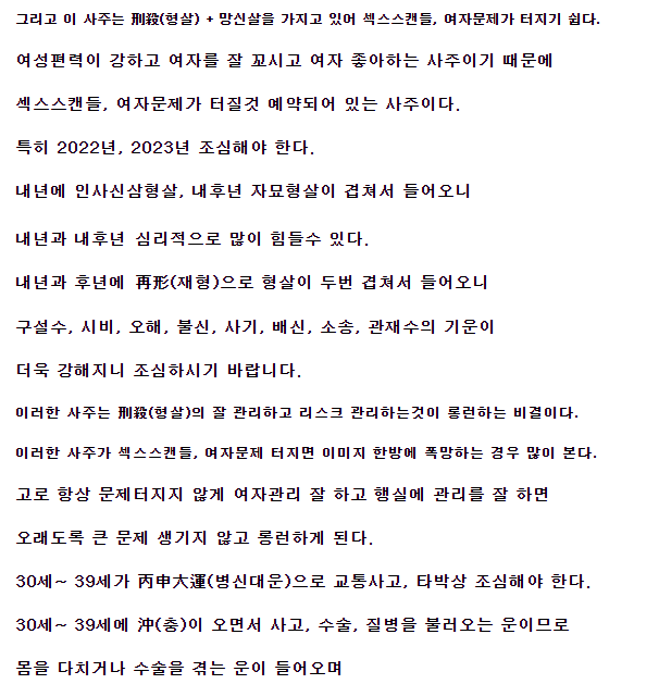 읽어보며 깜짝 놀랄 수 밖에 없었는데요. 사주를 보고 섹스스캔들, 여성으로 인한 스캔들을 예고했기 때문입니다.