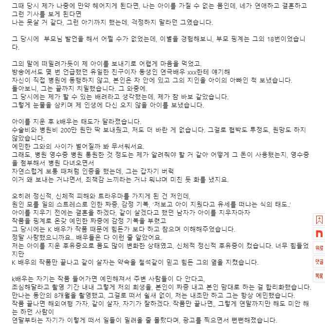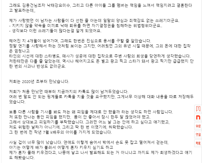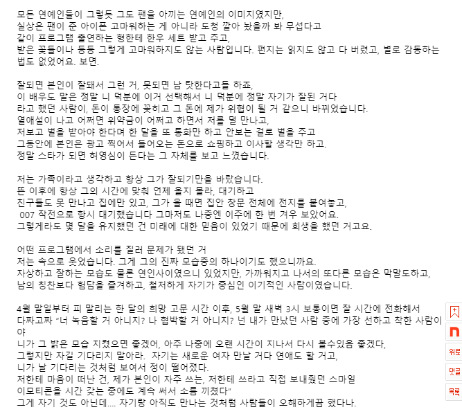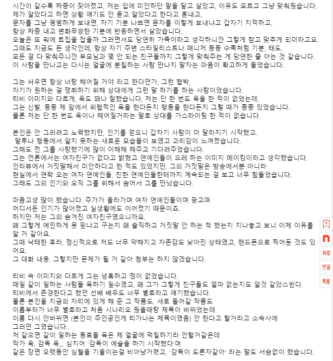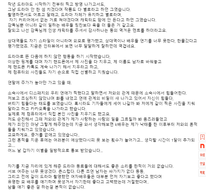 먼저 커뮤니티를 놀라게 했던 대세 배우K모씨에 대한 폭로글을 보여드리겠습니다.