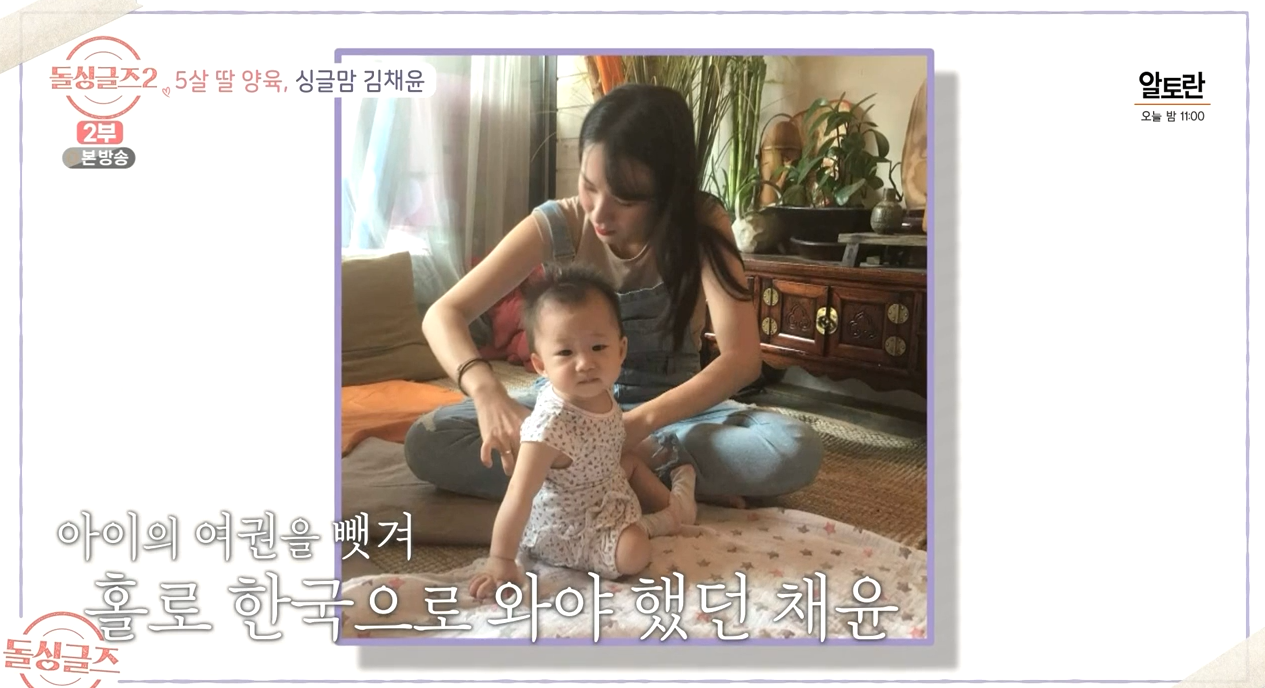 채윤은 다섯살 딸을 혼자 키우고 있습니다. 중국유학을 갔다가 거기서 만난 중국인과 결혼을 했고, 시댁은 매우 부유했지만 문화차이, 타국생활의 외로움 등이 이혼의 이유로 작용한거죠.