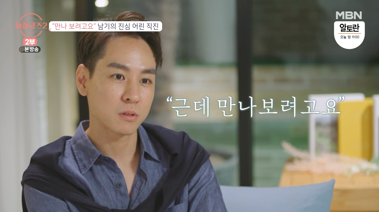 인터뷰때는 자녀가 있는 분은 힘들 것 같다고 이야기했지만, 다은과 데이트를 한 후 '만나보려고 한다'라는 심정을 밝혀 MC들을 환호하게 만들었죠. 직진하는 모습이 굉장히 멋있습니다.