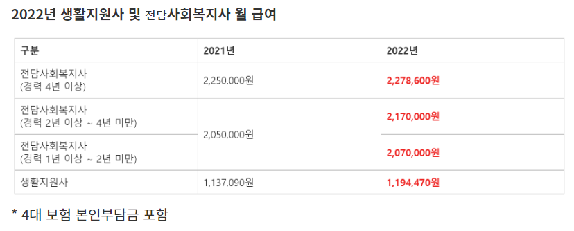 월 급여는 위의 표를 참고하시기 바랍니다.