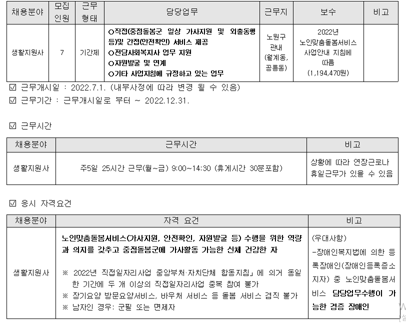 1. 최근 3년이내 유사돌봄(가사간병방문지원, 노인돌봄, 장애인활동지원, 아이돌봄 활동가) 분야 500시간 이상 서비스 제공 업무 종사자
