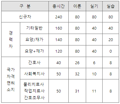 - 경력자 : 40시간 교육이수