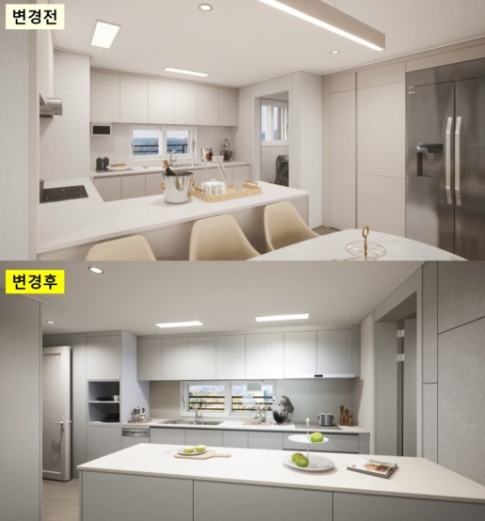 주방환기창도 기존 것에 비해 넓은 것으로 채택되는 것이 특징입니다.