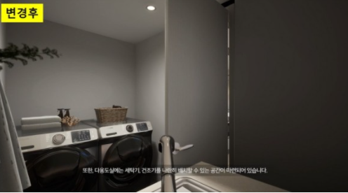 변경 후 도면을 보시면 현관 바로 옆에 대형 펜트리를 보실 수 있습니다.
