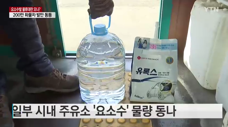 요소수란 디젤차에서 나오는 배출가스(질소산화물)을 정화시켜주기 위해 장착하는 촉매재입니다.