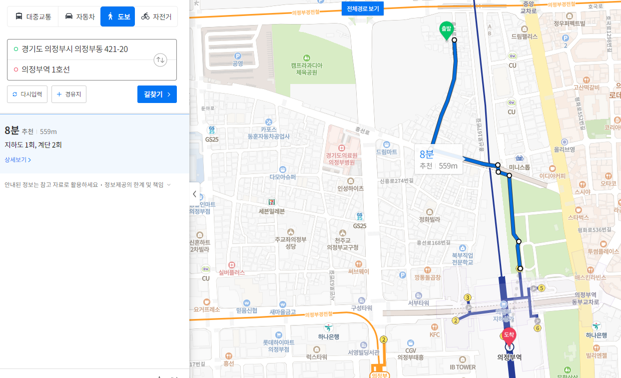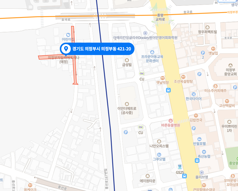 의정부 중앙역 경전철과는 도보 7분입니다.