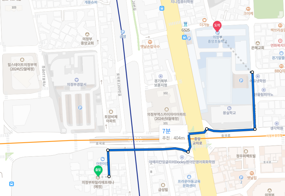 하지만 입주시에 파밀리에 포레나 뿐 아니라 의정부 스카이자이, 의정부역 힐스테이트 입주민까지 매우 많은 세대수가 예정되어 있으므로 초등 보행길이 개선되지 않을까 생각됩니다.