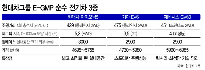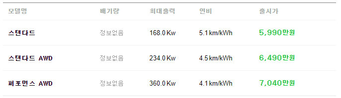 전기차 3종을 비교해보시기 바랍니다.