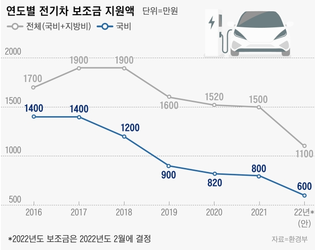 우리나라는 2016년 부터 전기차 보조금 지원을 시작했으나, 해를 거듭할 수록 그 금액이 축소되고 있습니다.