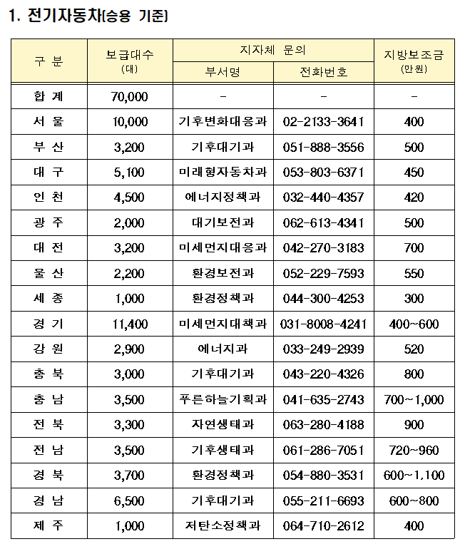 전기자동차 지방비(지자체 보조금)