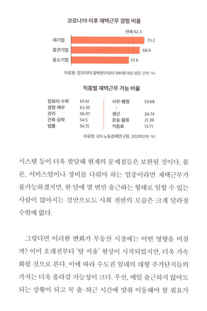 이렇게 된다면 부동산 시장은 어떤 변화가 생길까요? 바로 '탈 서울' 가속화입니다. 직주근접의 의미가 사라지니 굳이 서울에 살 필요가 없는 것입니다.
