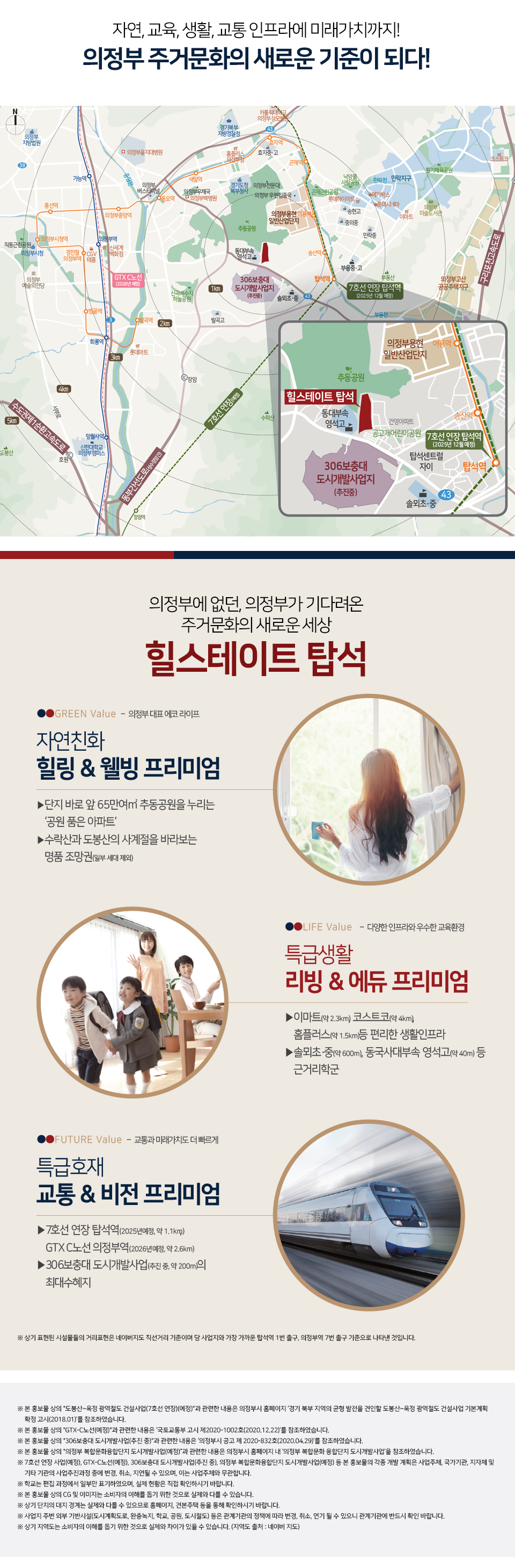 - 의정부의 호재인 양주 덕정~의정부~서울 삼성역, 수원까지 74.8km를 잇는 GTX-C노선도 근거리에 있습니다. 인근 수도권 제2순환고속도로가2023년 개통 예정되어 있으며 의정부IC를 통한 수도권 제1순환고속도로, 동부간선도로 등 광역도로도 쉽게 이용할 수 있습니다.