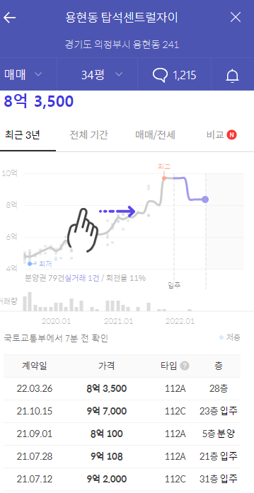 인근 탑석 센트럴 자이가 시세리딩 단지인데 현 실거래가격도 참고하시기 바랍니다.