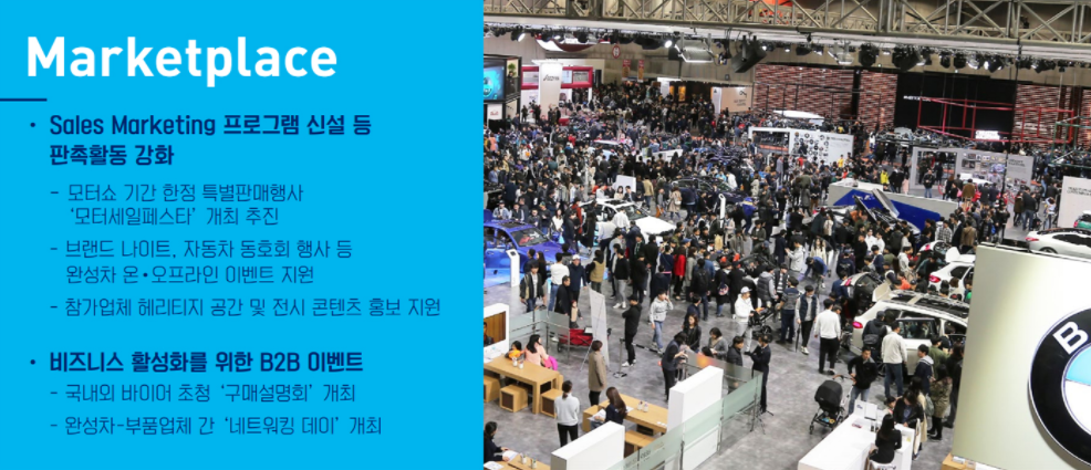 자동차제조산업관 서울모터쇼의 부대행사로 개최되는 자동차제조산업관(오토매뉴팩)은 신기술, 소재, 부품, 용품, 생산 제조 장비, 엔지니어링, 연구 및 기술개발 솔루션에 이르는 자동차관련
