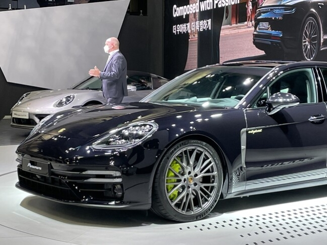 독일 포르셰가 공개한 ‘파나메라 플래티넘 에디션’은 차 이름을 새긴 로고와 바퀴 쪽 캘리퍼가 연두색입니다. 차량 외부를 통해 배터리 충전이 가능한 플러그인 하이브리드차의 친환경적 이미지를 강조한 디자인을 나타낸 것이죠.