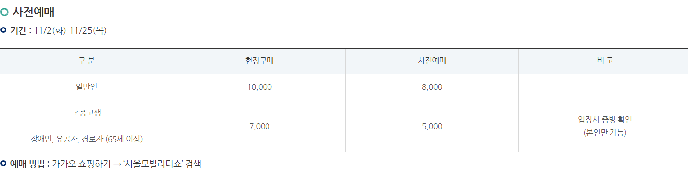 신청방법 : 사전신청 및 현장접수(서울모빌리티쇼 홈페이지 참고)