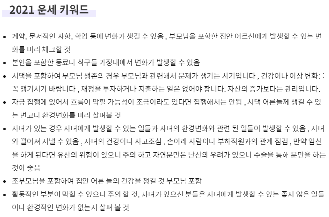 2021년 정통운세를 봐보니 무료임에도 나름 알차게 들어있는 풀이였습니다.
