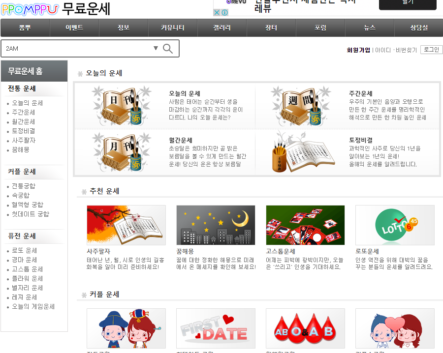 뽐뿌에서 제공하는 무료운세입니다. 상단메뉴 정보에 들어가면 무료운세를 확인하실 수 있습니다.