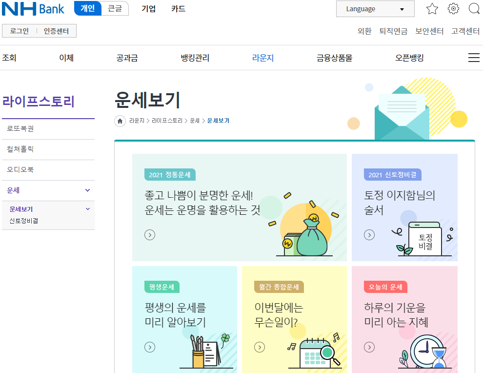 농협인터넷뱅킹에서 제공하는 무료운세입니다. 이곳도 아직 업데이트가 안된 상태입니다.