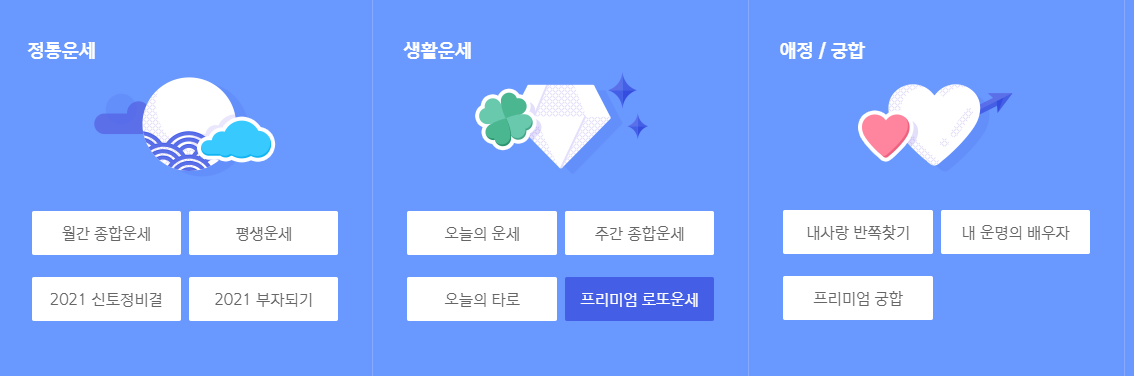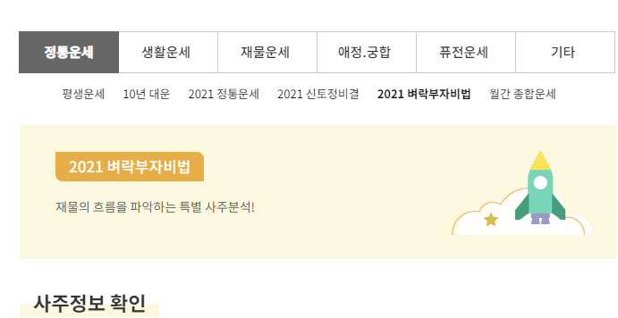 그 중 인상 깊었던 것은 정통운세->2021 벼락부자비법입니다.