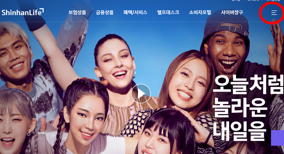신한생명에서 제공하는 무료운세를 보겠습니다. 상단의 메뉴바를 클릭한뒤