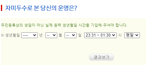 월간종합운세/평생운세/신토정비결/부자되기 등 다양한 운세를 무료로 볼 수 있습니다.