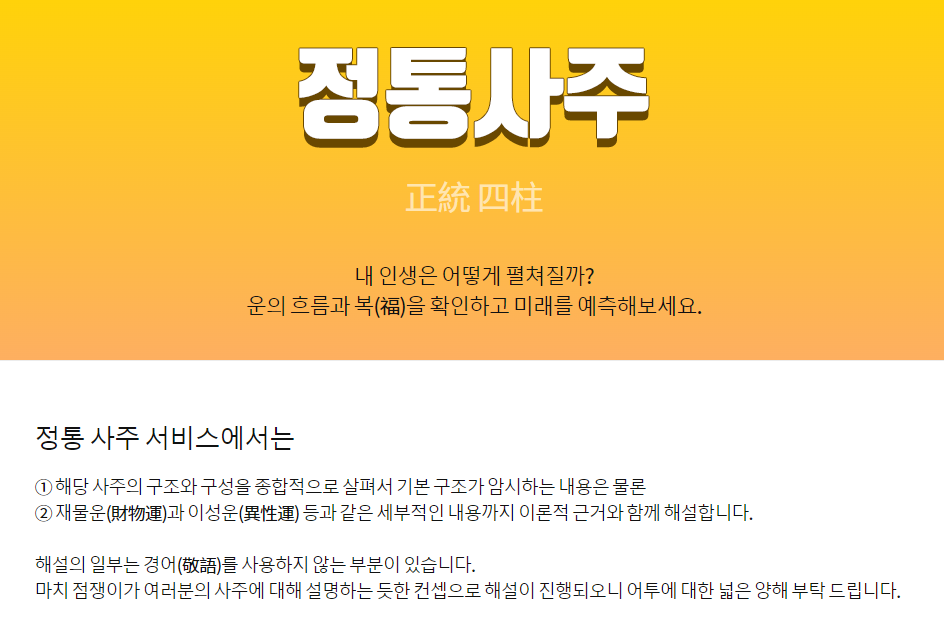 그래서 매년 용하다는 철학관에 가서 돈을 쓰고 오곤 했었답니다. 하지만 이번 임인년부터는 무료사주로 대체해보려고 합니다.