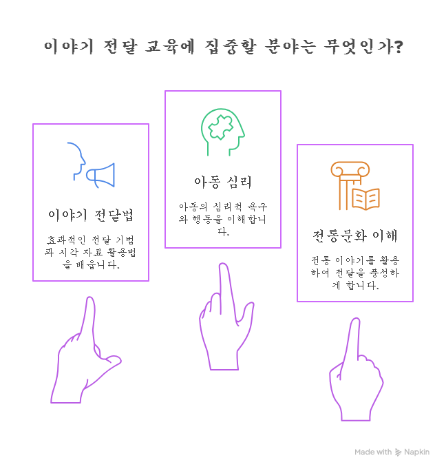 이야기 전달법, 아동 심리, 전통문화 이해 등 약 60시간 내외의 교육을 받습니다.